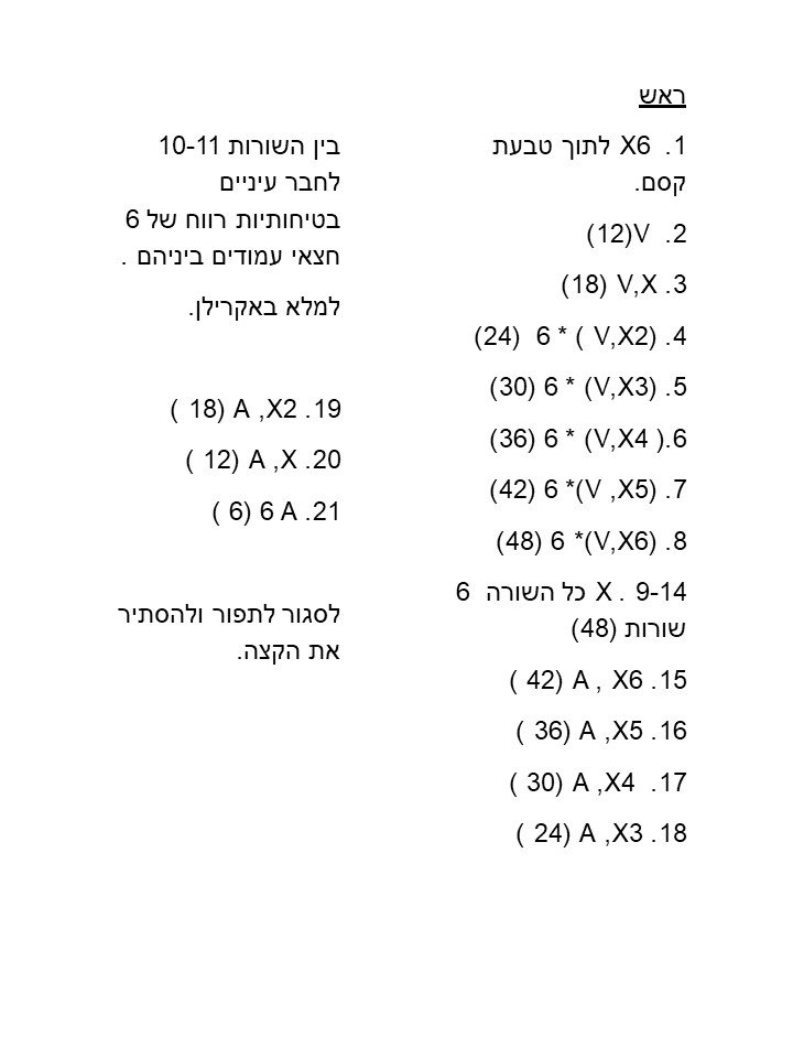יש לסרוג את חלקי הבובה לפי הסדר הכתוב.